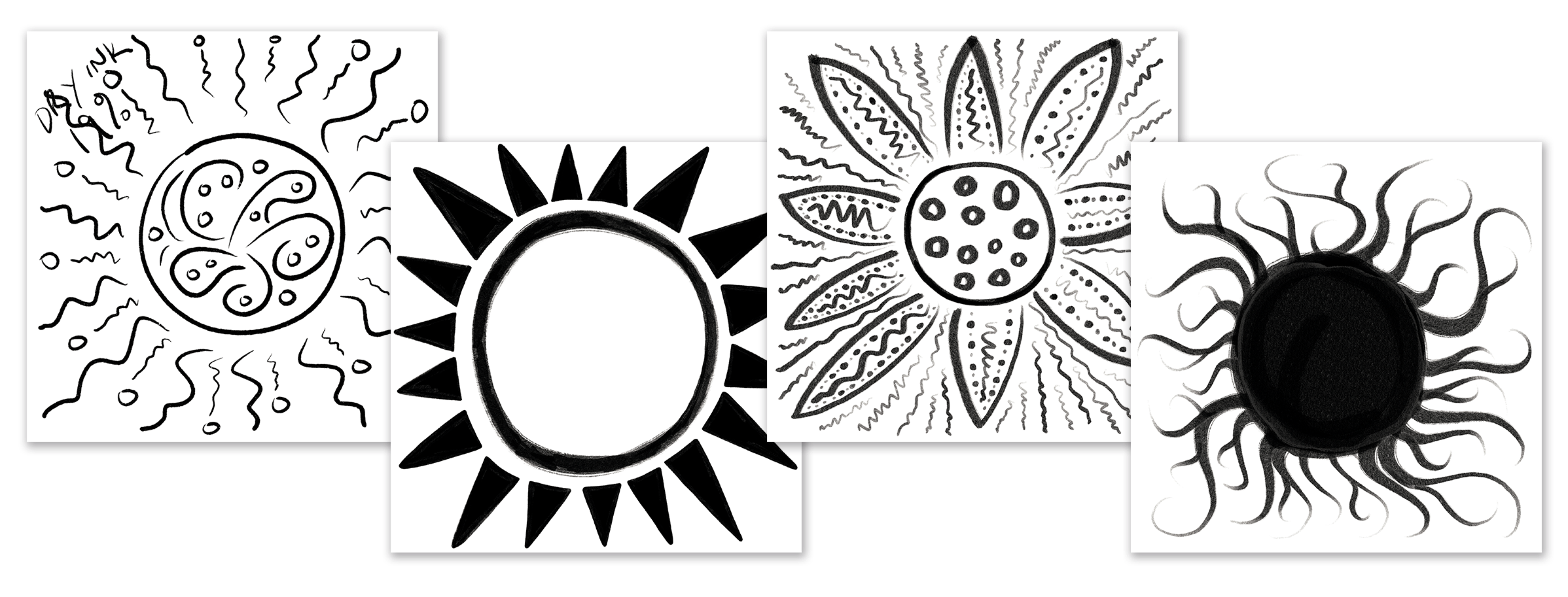I was just messing around with brushes and kept doodling suns. They were bold, spiky, swirly, full of energy – and I loved how they looked all together on the screen.